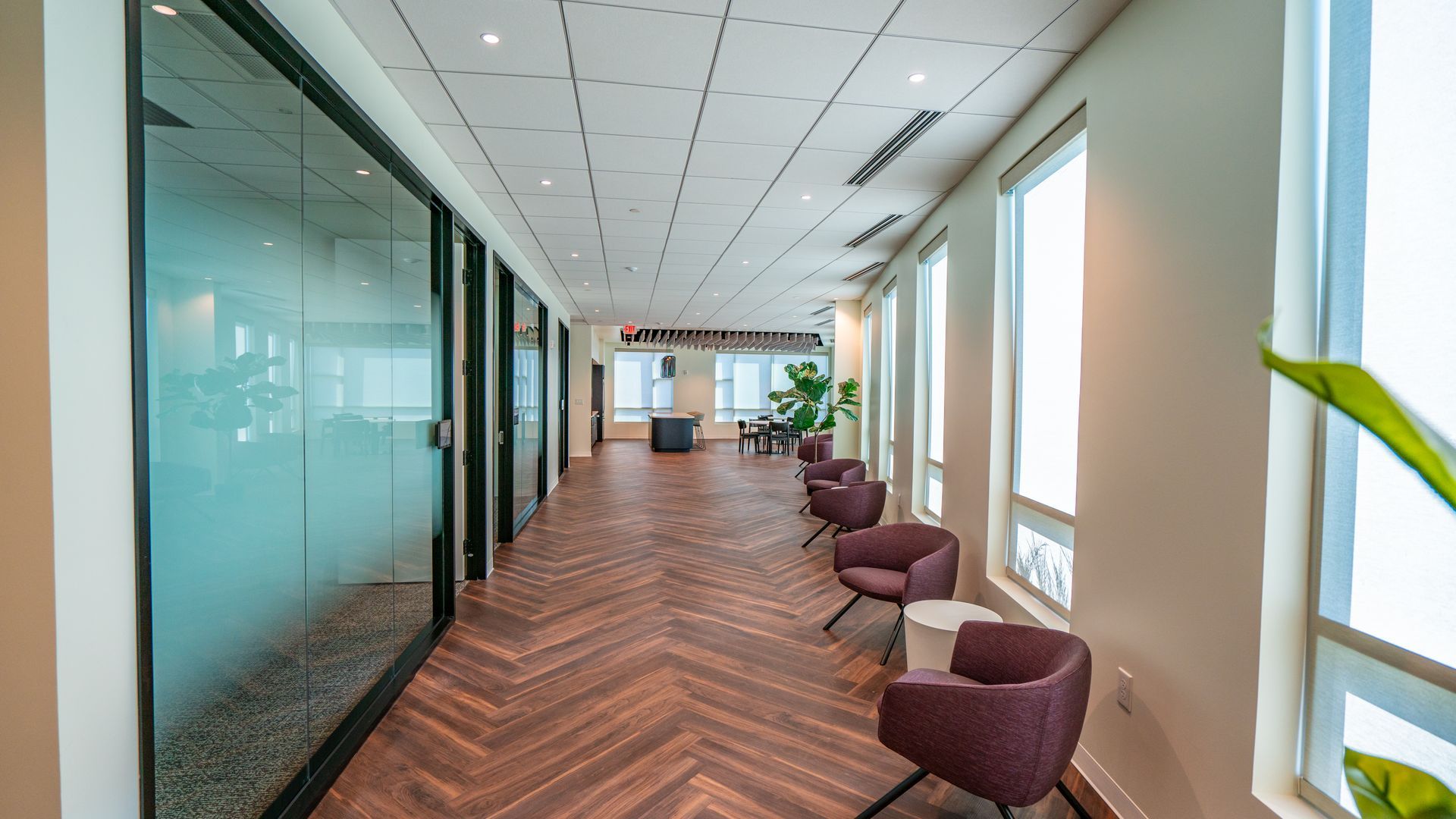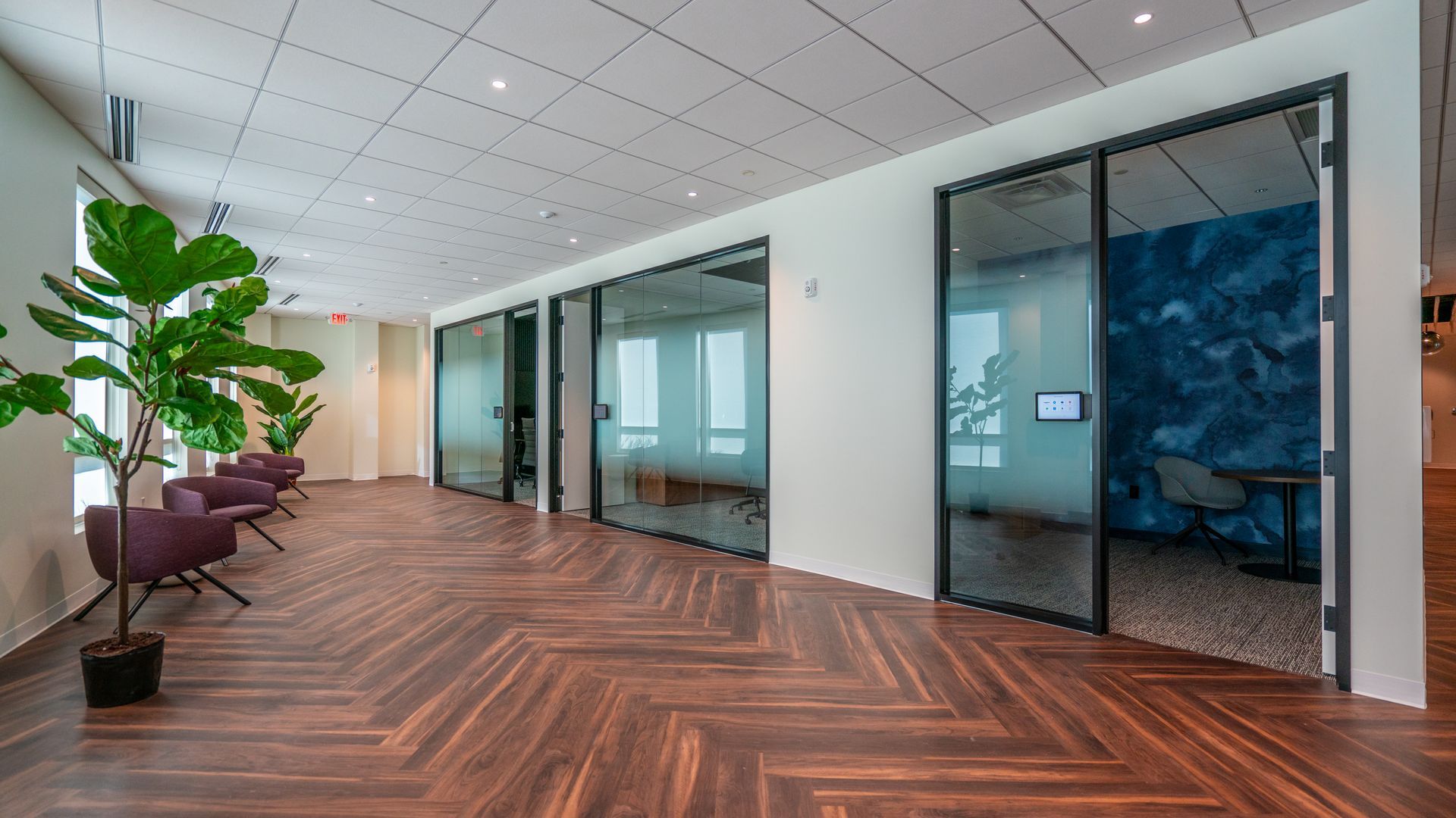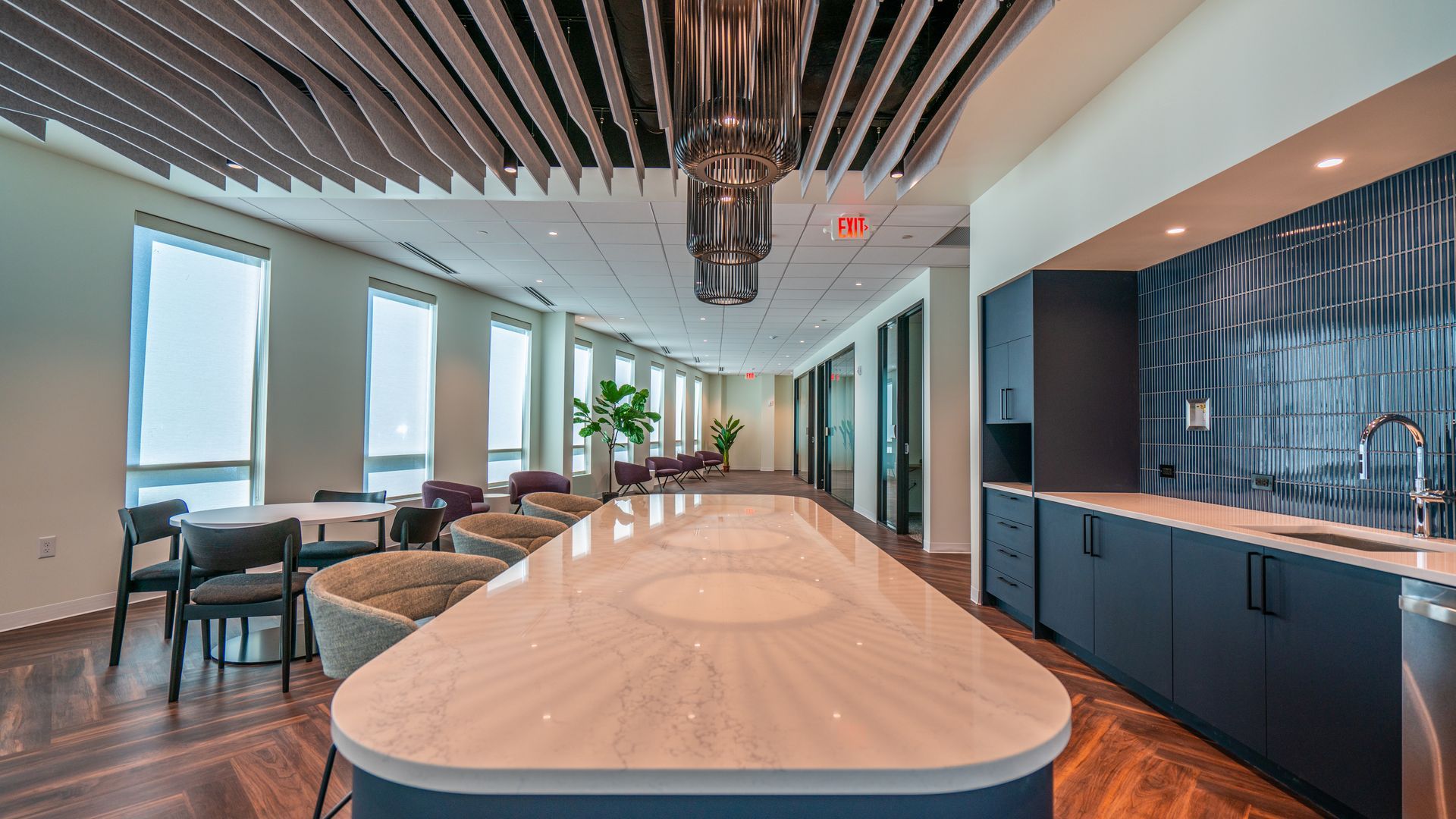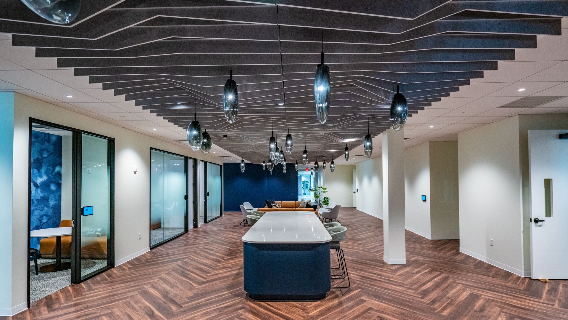 Woodbine Construction recently completed the 10,000 square foot tenant fit out for Cerity Partners of Louisville’s new university training center. Some unique details on this project included operable partition walls, acoustical ceiling battens, acoustical wall finishes, custom millwork, and custom glazing.