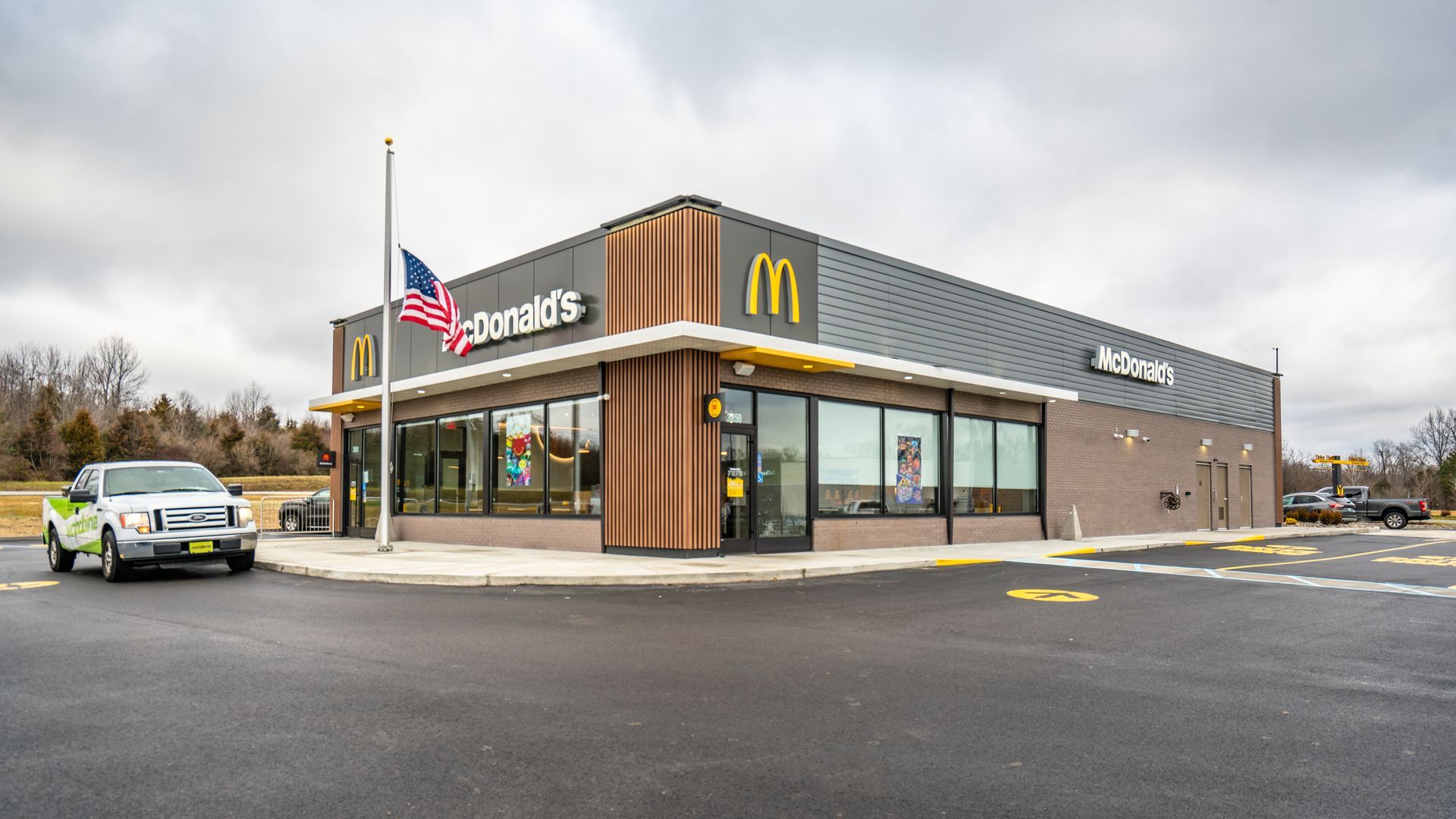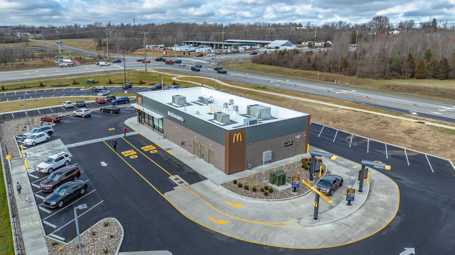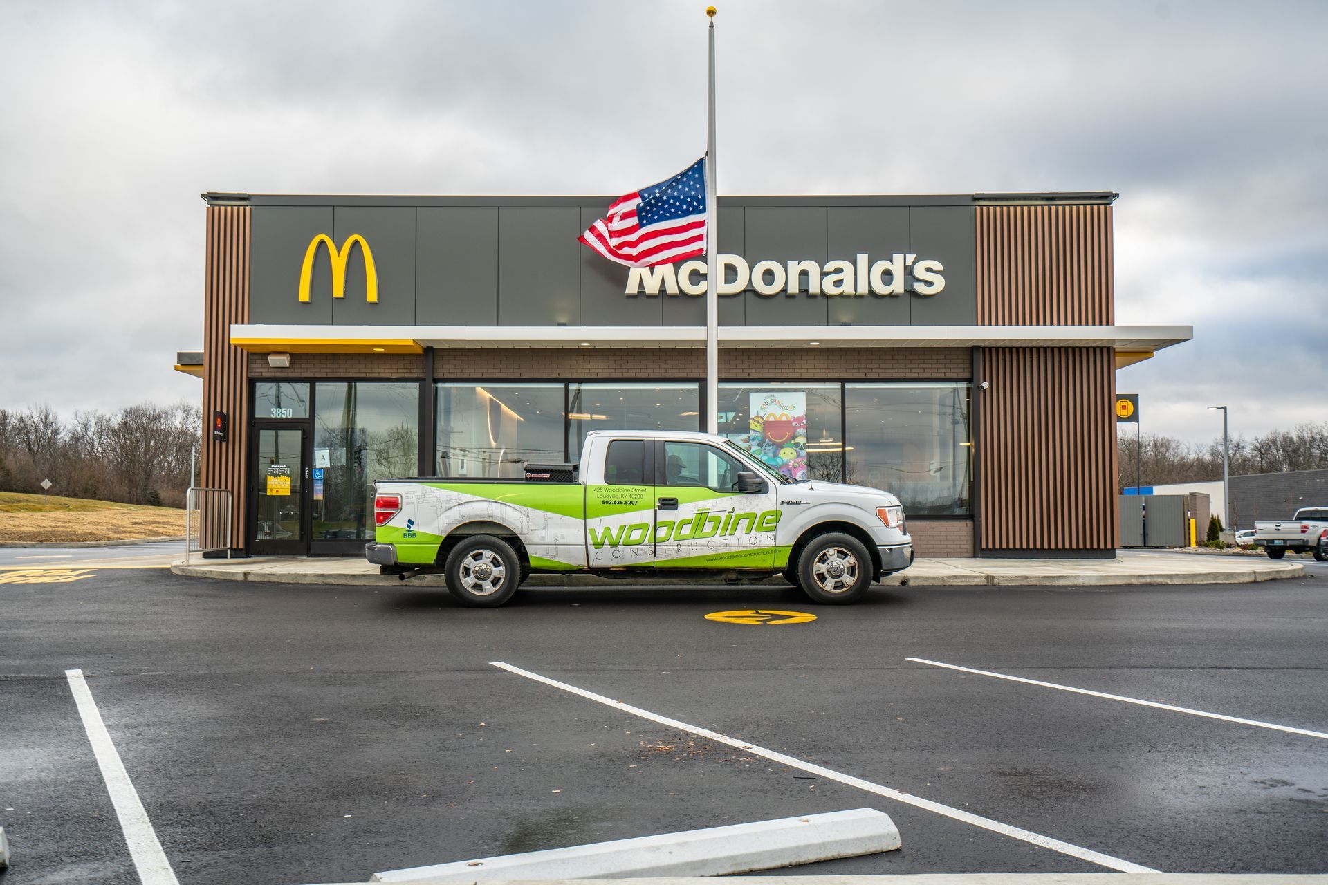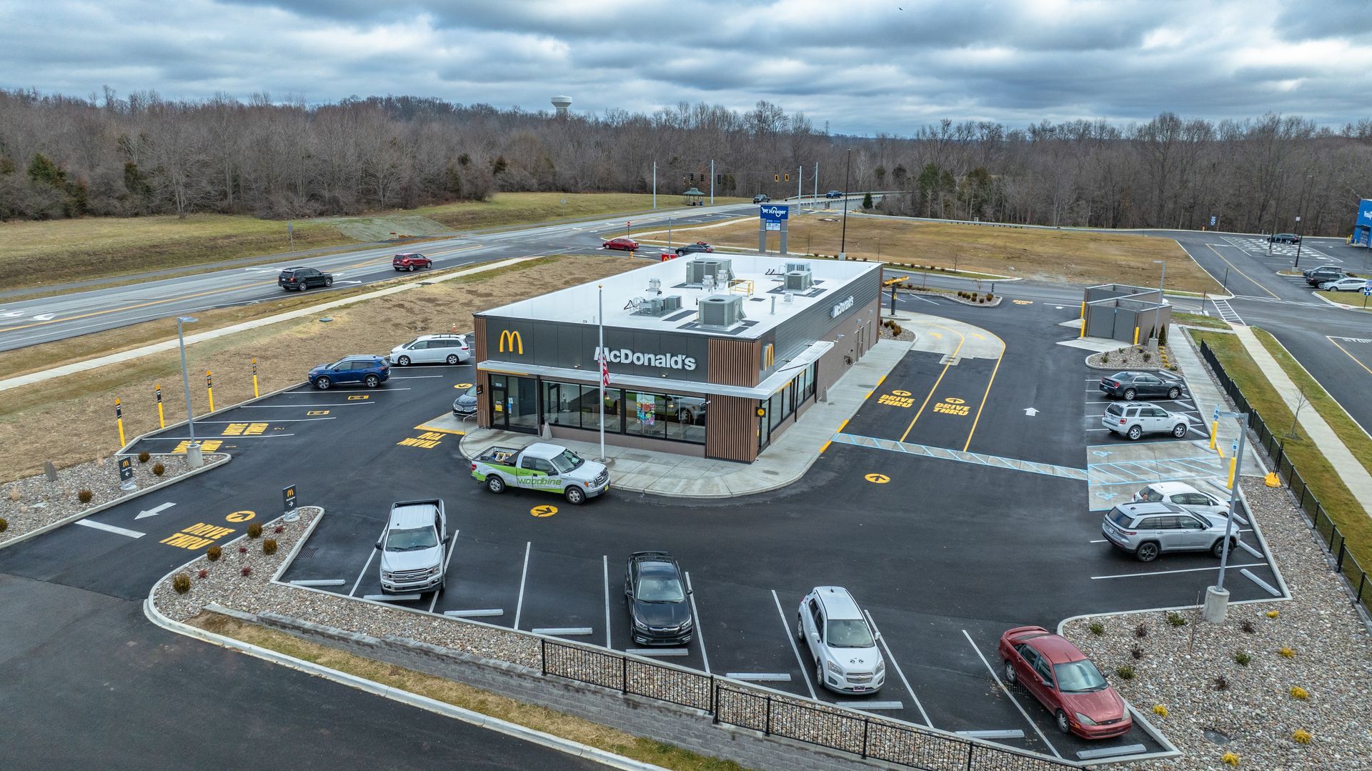 Woodbine Construction was hired to complete the new ground up build located in Lagrange, Kentucky featuring McDonald’s new Luna décor package.